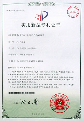 Name: Patent Certificate Date: Mar 05, 2008 Valid until: Mar 04, 2018 Range: casting wheel of CCR Reference: Intellectual Property Office of the People's Republic of China